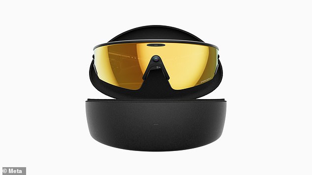 Initially, the advanced device appears similar to regular sports eyewear, featuring a curved style and mirrored lenses.