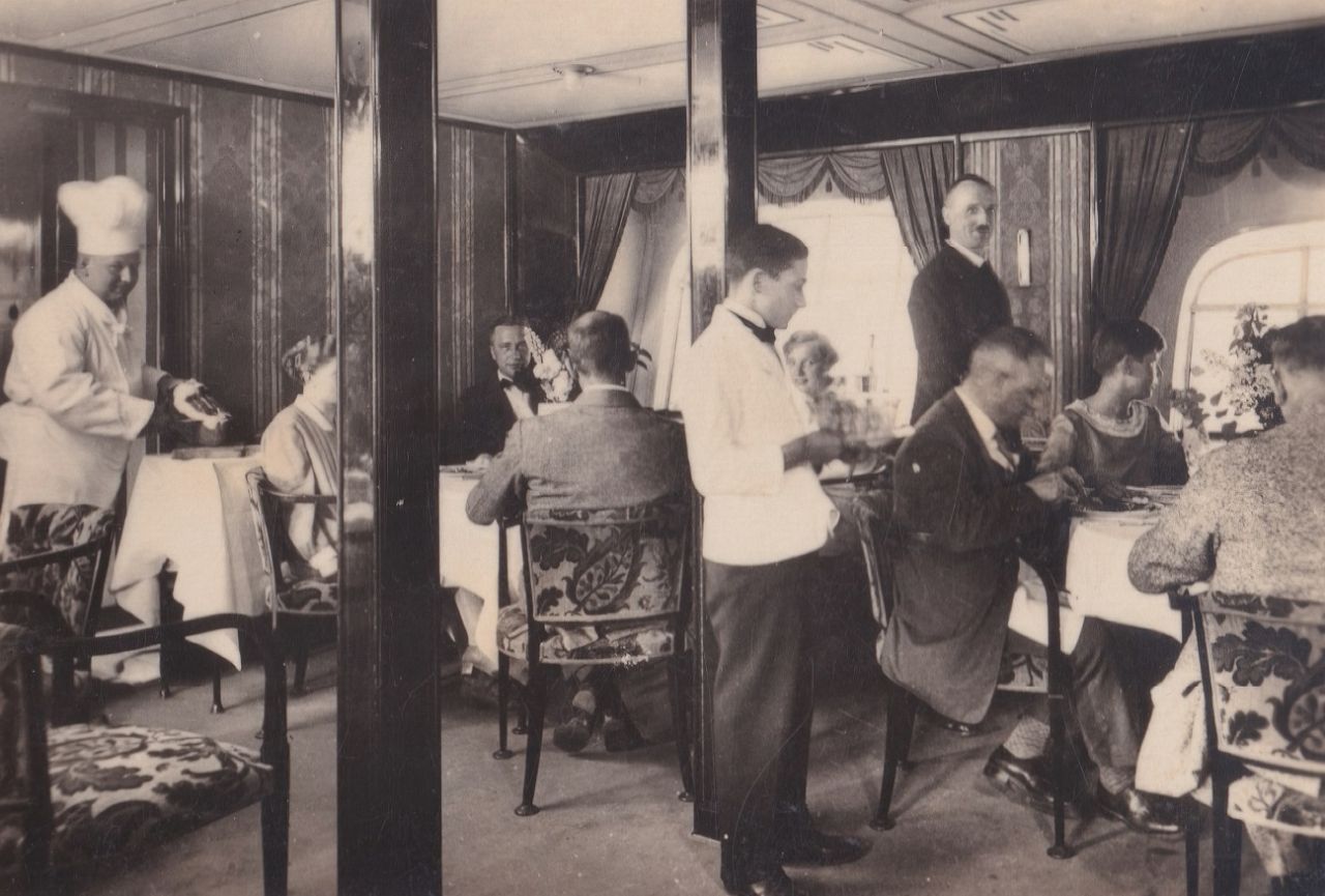Megías likened the journey aboard the Graf Zeppelin to staying in a high-end hotel. The airship provided all essential comforts: a kitchen staffed by a chef, a communication room enabling passengers to transmit and receive radio telegrams, and a lounge that functioned as a dining area, sitting room, and workspace.
