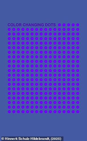 The seemingly straightforward illusion displays nine dots against a dark purple backdrop.