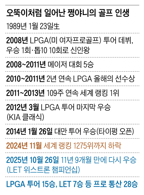 Yoo So-yeon, 35, a former top-ranked player who faced Tseng during her peak, remarked, “It’s similar to an EPL (English Premier League) player moving down to a local amateur league and then coming back to the top level.” She further stated, “A few months ago, Tseng told me, ‘I’ve tried everything, and finally adjusted my putting style, which made me feel much more comfortable.’ Her win brought me to tears.” Golf analyst Na Sang-hyun commented, “After enduring more than ten years of repeated setbacks, including missing cuts and fading hopes, only to eventually reset and achieve success—it’s truly impressive.”