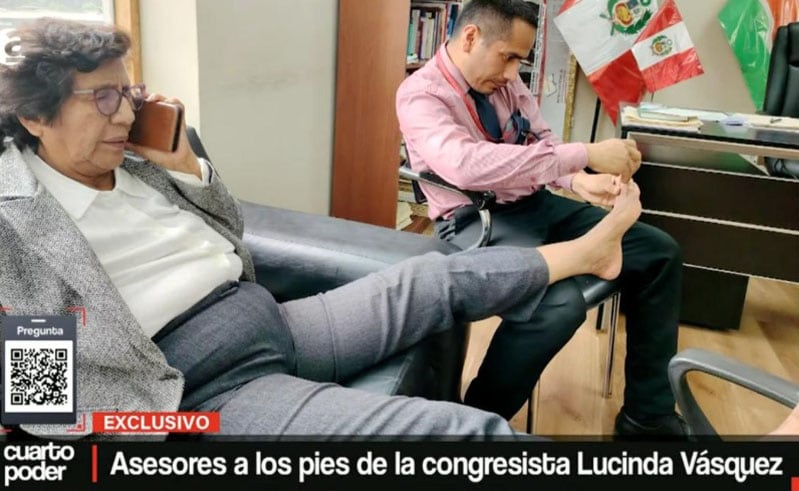 A picture of a Peruvian congresswoman with her toes being trimmed by a helper has caused debate.