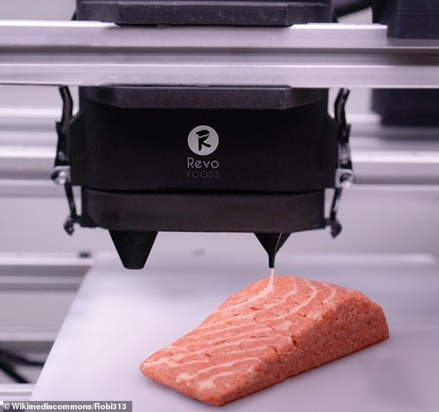 3D food printers can create meals like pizza, pasta, burgers, and quiche by layering the basic components.
