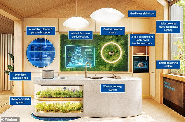 “In 2075, the kitchen will not only be where we prepare meals – it will be the most intelligent room in the home,” said Dan Ferrari, head of kitchens at Wickes.
