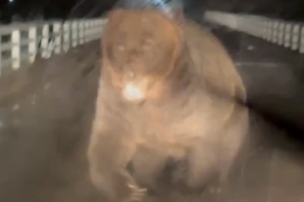 On the 7th, social media shared a six-second video that said, “An employee was on the way to a ranch to deliver nighttime feed around 7:30 p.m. the day before when they came across a bear.” The video showed a bear running after a car on a dark road after sunset. There were also images displaying a vehicle that was damaged due to a bear attack.