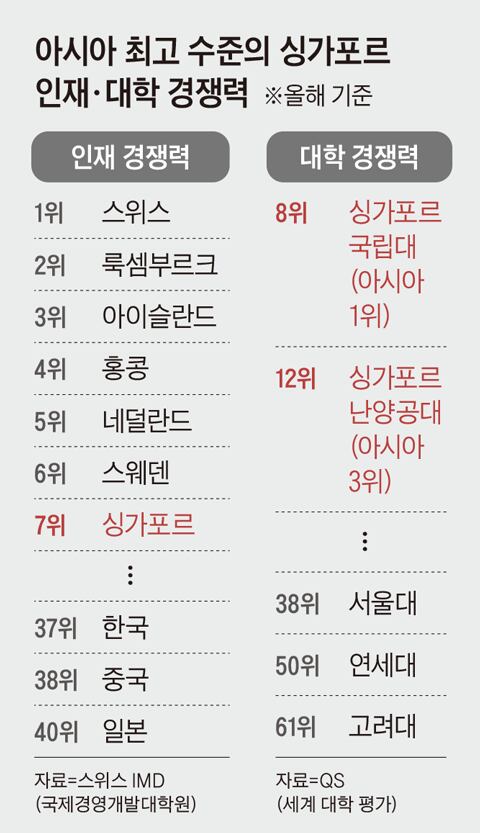 Due to this global talent recruitment, NTU and the National University of Singapore (NUS) now include faculty members, researchers, and students from more than 100 countries. This approach, developed out of necessity for a city-state with limited resources and population, has become the key factor in the universities’ top-tier global competitiveness. In the 2025 QS World University Rankings, NUS secured the 8th position worldwide, the highest in Asia. NTU, founded in 1991 by looking at Korea’s KAIST and POSTECH as models, has long surpassed Korean institutions in international rankings. In the 2025 QS rankings, NTU came in 12th, the third-highest in Asia after the University of Hong Kong (11th).