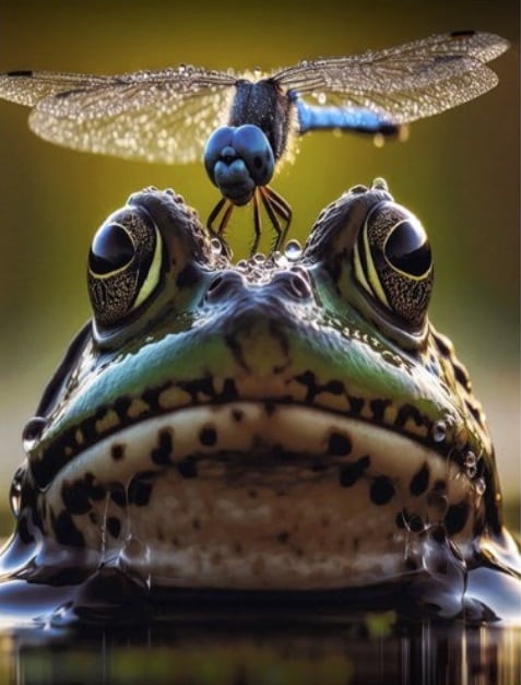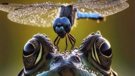 The acclaimed artwork, which froze the instant a dragonfly perched on a frog’s head, was honored with the Grand Prize for its *‘humor and outstanding composition’*. The photograph was displayed at the Saitama Prefectural Museum of Modern Art last September and was also showcased in the Saitama edition of the Asahi Shimbun.