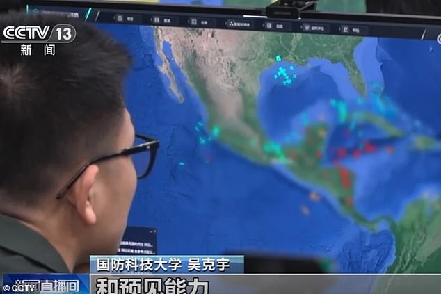 And on a third display, Taiwan was placed at the center of a map utilized in the simulation.
