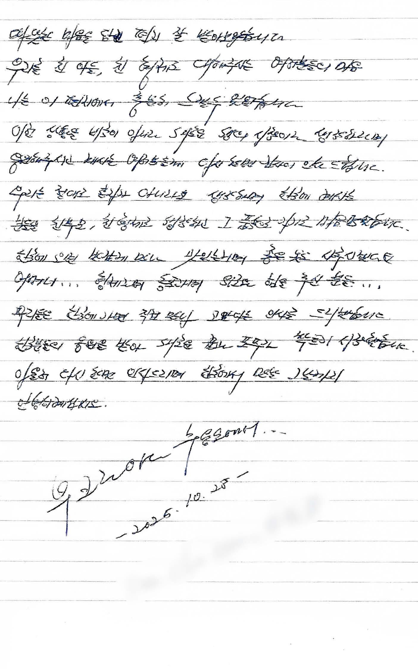 North Korean defector organizations consider the recently revealed handwritten letters as ‘evidence’ that both individuals wish to flee to South Korea. Last month, the ‘Emergency Committee for the Free Repatriation of North Korean Soldiers’ was established with the support of the NGO Council for North Korean Human Rights, involving approximately 80 North Korean human rights groups globally. People Power Party legislator Park Choong-kwon, a former North Korean defector, along with others, also introduced a resolution calling for the free repatriation of North Korean prisoner soldiers.