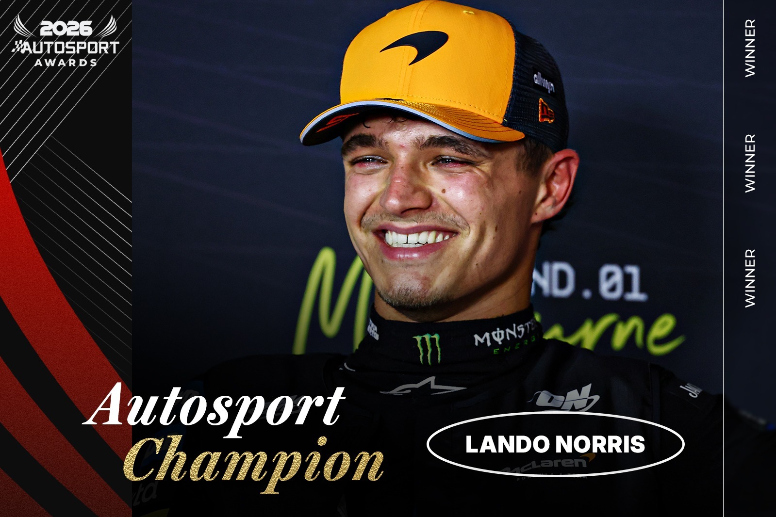 Norris also won the first-ever Champion award at the 38th Awardsat London’s Roundhouse on 21 January, marking his F1 championship victory nine years after claiming the renowned McLaren BRDC Award.