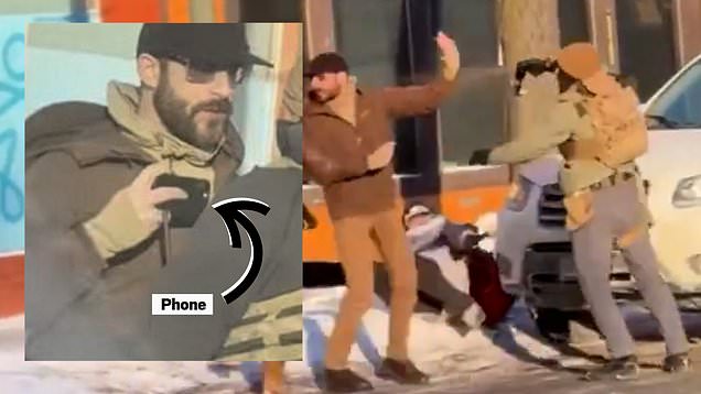 ‘Following a review of the footage, I think it’s very probable that the first shot was an accidental discharge by the officer in the gray jacket after he took the Sig P320 from Pretti’s holster while leaving the area,’ he stated.
