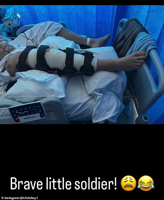 In the video, the 49-year-old demonstrates the appearance of his ‘chunky scars’ through his injured and swollen leg, along with visible stitches.