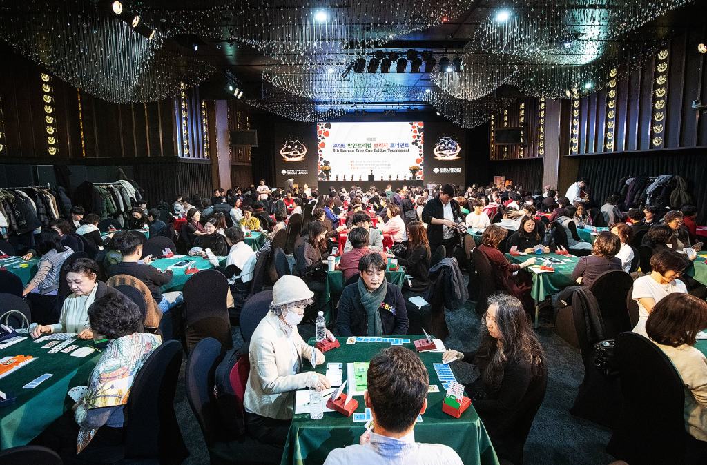 The Banyan Tree Hotel located in Jangchung-dong, Jung-gu, Seoul. At 9 a.m. on the 28th, during a severe cold spell that brought temperatures down to -9°C, the hotel’s banquet hall was already filled with people. Attendees, having removed their heavy coats, settled into their seats at the card tables, and a sense of quiet tension and anticipation started to emerge. This was the moment the 8th “Banyan Cup Bridge Tournament” commenced.