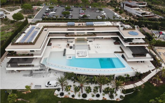 The property covers 12,000 square meters of land and includes 5,000 square meters of constructed space. Work started in 2020 and has now been completed. The interior features Italian marble, while the faucets are said to be crafted from pure gold. The walls include a mural depicting Louis Vuitton.