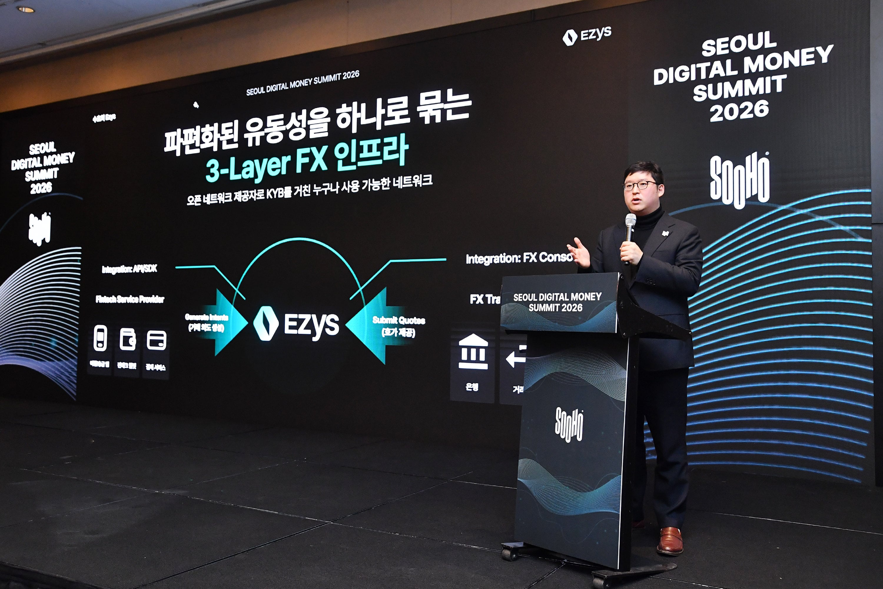 On this day, SOOHO.IO introduced ‘Ezys,’ a B2B (business-to-business) infrastructure that significantly simplifies international money transfer and settlement processes through the use of stablecoins. Park Ji-su, CEO of SOOHO.IO, stated, “While the current SWIFT (Society for Worldwide Interbank Financial Telecommunication) system requires 2-3 days for settlement and incurs high costs, Ezys allows for instant settlement.” By utilizing blockchain technology, it consolidates foreign exchange demand in one location and establishes a framework for automatic trading at the best possible exchange rate. According to the results of a pilot project (Project Namsan) carried out last year targeting 2,000 foreign tourists, foreign exchange fees were cut by about 70%, dropping from the current 1% to 0.3%, and merchants could receive immediate settlement without any extra equipment. Park mentioned, “Ezys will serve as a key channel linking financial institutions’ liquidity with fintech needs beyond just payments.”