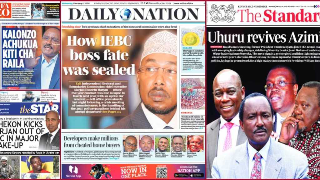 ,On Wednesday, February 4, newspapers examined the internal reasons for Hussein Marjan’s exit from the Independent Electoral and Boundaries Commission (IEBC), while also monitoring evolving partnerships and developments within the Azimio La Umoja coalition.