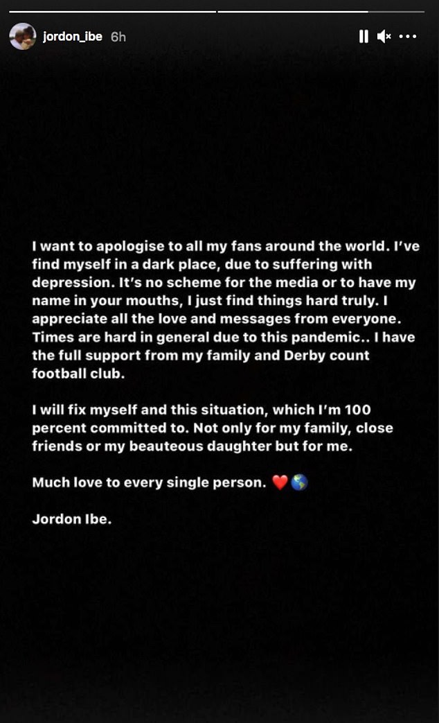 He subsequently joined Derby and released a statement indicating he was receiving treatment to enhance his mental well-being.