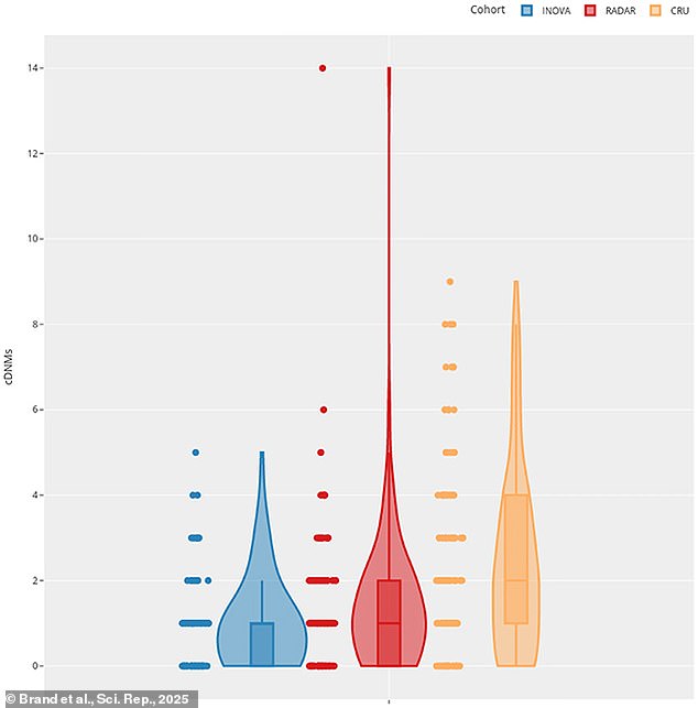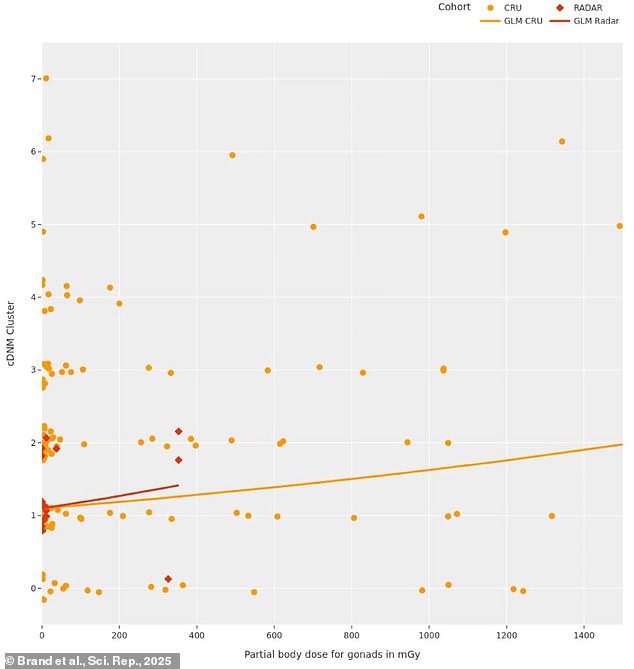On average, kids whose parents participated in cleaning up Chernobyl had 2.65 cDNMs, whereas children of radar operators had 1.48.