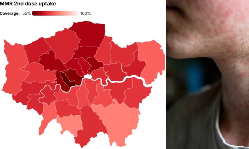 The wealthy area of Kensington and Chelsea has the lowest vaccination rates in London, with just 51 percent of children under five vaccinated.