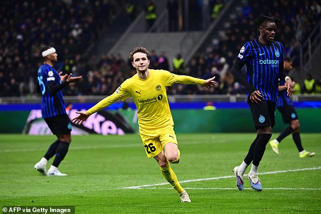Their dream night improved further 14 minutes later when Hauge transitioned from scorer to provider, setting up Evjen, who struck the ball past Sommer, effectively ending Inter’s chances of a comeback.