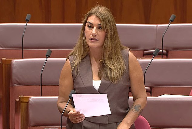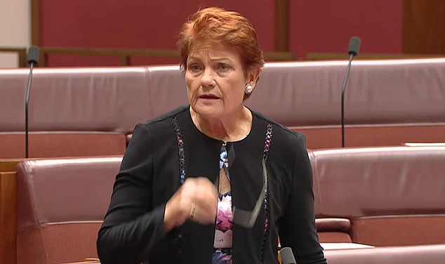 Green Party Senator Sarah Hanson-Young and Lidia Thorpe interrupted Hanson’s speech with interruptions.