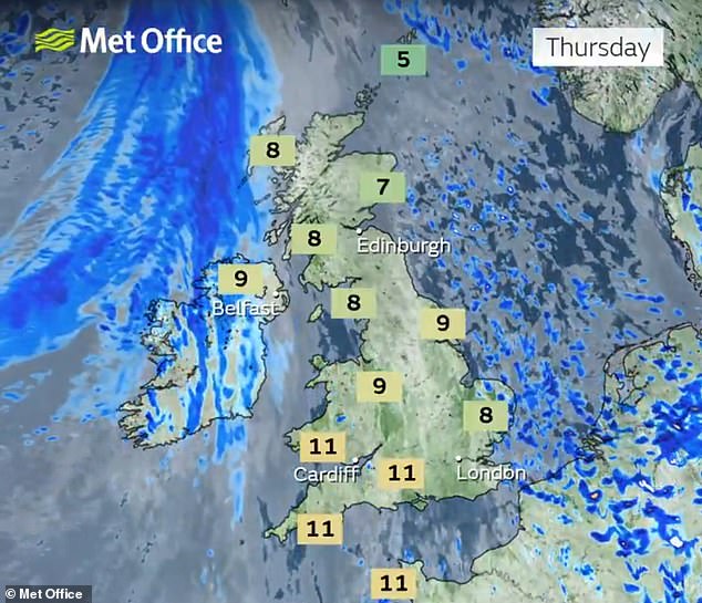 Many areas will remain dry with periods of sunshine on Thursday, but clouds and rain are set to move into Northern Ireland and western parts of Britain later in the day.