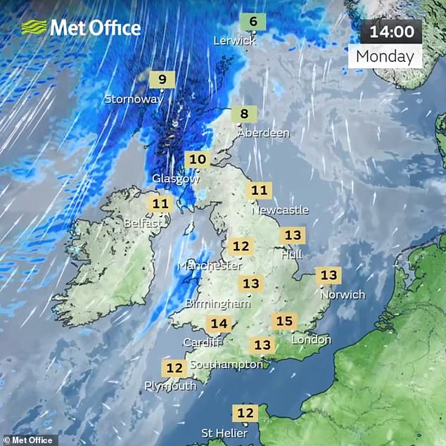 Deputy chief forecaster at the Met Office, Steven Keates, stated: ‘Following a period of warmer and clearer conditions, the UK is expected to become more unstable over the next few days.’