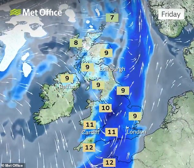 Mr. Keates mentioned that temperatures will vary between 6°C (43°F) and 10°C (50°F), although the weather will seem “more like single digits for many regions due to the wind.”