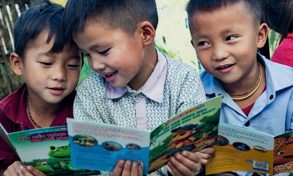 Kids in Lao Cai Province in northern Vietnam flipping through comic books. Photo by VnExpress/Nguyen Tu Anh |