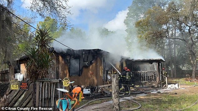 Citrus County Fire Rescue arrived around 10:30 a.m. and discovered the building completely surrounded by fire, which took approximately an hour to extinguish.