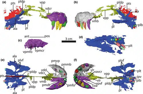 The fossil of Jirahgorgon cetoincludes a remarkably well-preserved skull and lower jaw, enabling scientists to examine its anatomy with extraordinary precision. Utilizing cutting-edgesynchrotron X-ray micro-computed tomography in Grenoble, FranceScientists created a 3D model of the skull without harming the specimen, exposing internal details that would have remained concealed.
