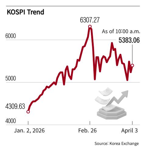 As reported by the Korea Exchange on the 3rd, the KOSPI started at 5,375.50, rising 2.7% compared to the last trading day. It temporarily surpassed the 5,400 mark in the early session. Despite a drop of 4.47% the previous day, which pushed it below the 5,300 level because of the impact of U.S. President Donald Trump’s strict statements regarding Iran, it made a recovery within a single day.