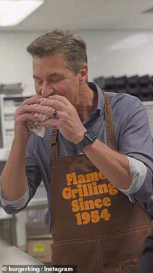 The The president of Burger King shared a video himself.taking a huge bite of the new and enhanced Whopper – and providing a single-sentence punchline.