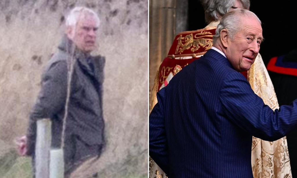 Andrew Mountbatten-Windsor appeared completely disconnected from royal life as he was seen walking his dogs the day before the King and Queen presented a united image for their event.Easter church visit.