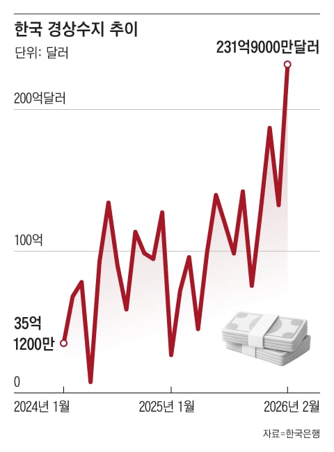 South Korea’s trade surplus hit a new peak of $23.19 billion in February, according to the Bank of Korea, which reported this on the 8th. This exceeded the previous record established in December of the previous year by two months. The surplus has been maintained for 34 straight months, making it the second longest period since the 2000s.