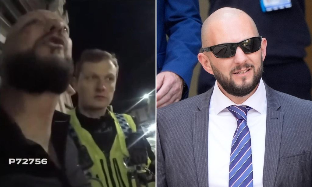 Bodycam video captured him loudly yelling ‘you stupid f****** c***’ and ‘you stupid f**** t***’ during a drunk outburst.