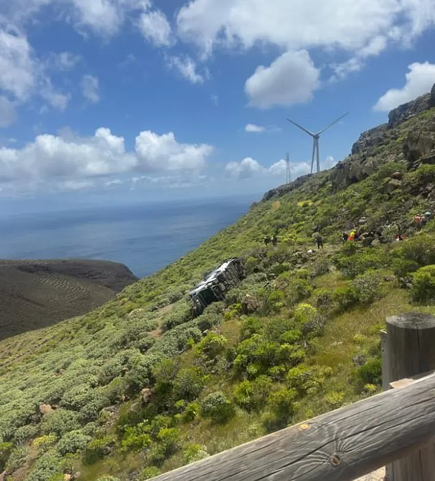 The topography of the area has made rescue efforts more challenging, leading the Civil Protection, Environment department of the Cabildo de La Gomera, and the Volunteer Firefighters to stabilize the vehicle’s structure to avoid additional movement.