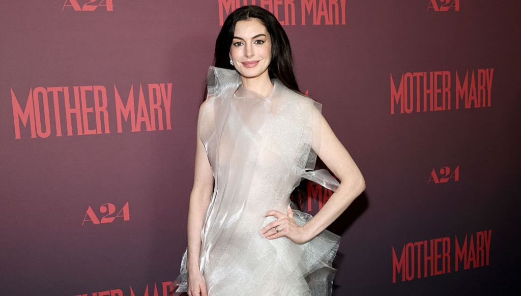 Anne Hathaway shines on the red carpet at Mother Mary, adorned in elegant jewelry.