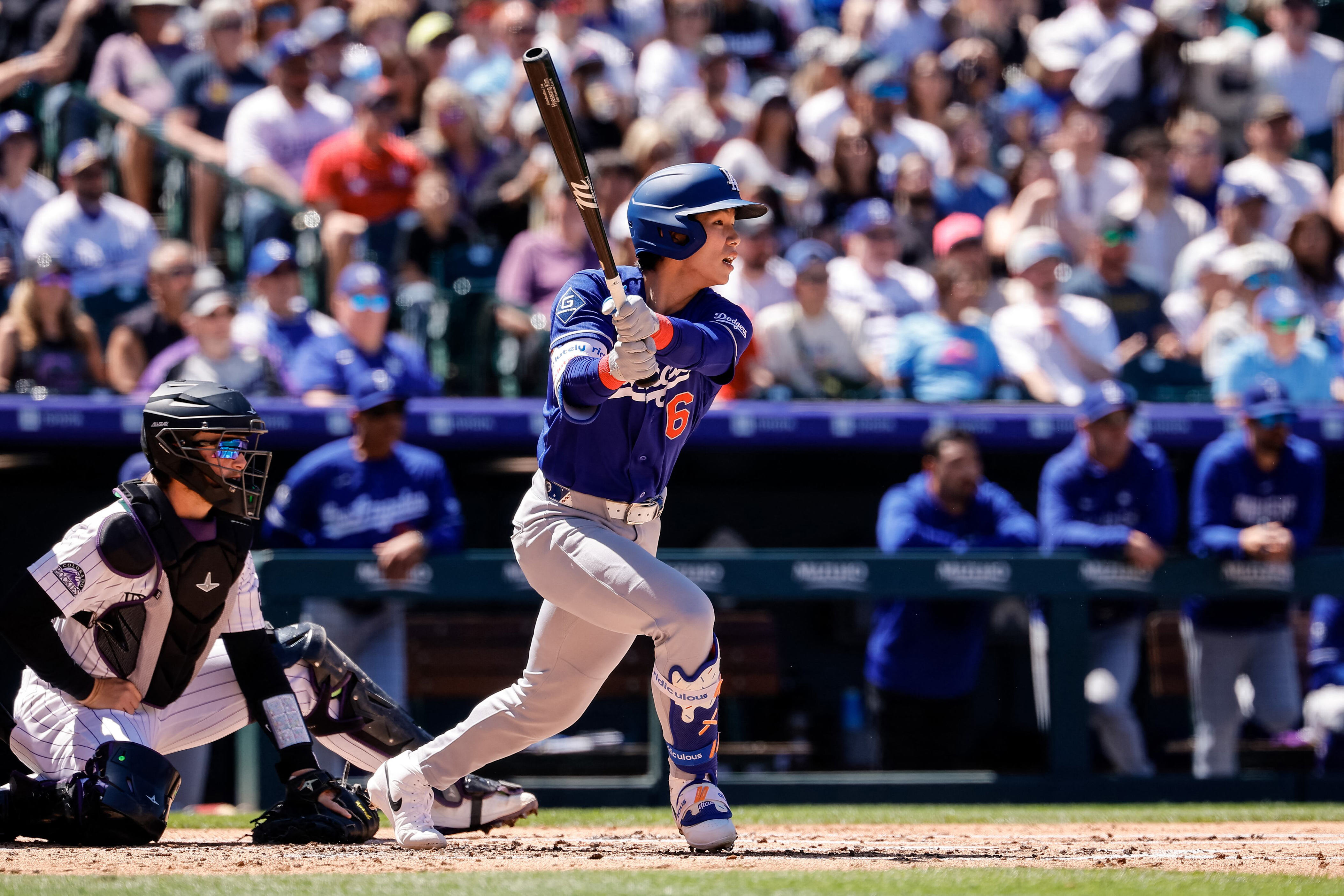 At the start of the fourth inning, with one out and runners on first and second, he hit a fly ball to center field. In the sixth inning, also with one out and runners on first and second, he hit a groundout to third base. However, in the eighth inning, with two outs and a runner on first, he managed a single to left field, finishing the game with multiple hits. Although no more runs were scored, the Dodgers fell 6-9 to the Rockies, ending their winning streak for the season.