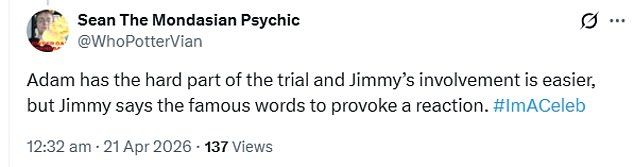 They wrote: “The conflict between Adam and Jimmy begins” and “It’s a shame to see Adam and Jimmy exchanging harsh words! They appeared to be having a good time, and now this—perhaps Adam is starting to face difficulties as everything comes to an end.”