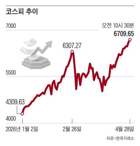 As reported by the Korea Exchange on the 28th, the KOSPI started at 6,646.80, reflecting a 0.48% increase compared to the previous trading day. Earlier, the KOSPI ended at 6,615.03, rising 2.15% from the prior day’s closing figure, which was its first instance exceeding the 6,600 mark.